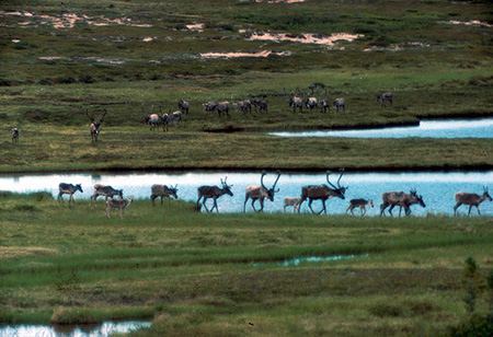 Caribou Hunting Jérémie Giles 1999 It is quite likely that the first groups of people to enter the Ottawa Valley were following small herds of caribou which had begun to use the landscape newly freed from the grip of the glacier. Caribou at Whitefish Lake, District of Mackenzie, Northwest Territoires Marjory Gordon 1977 A small herd of caribou like this one may have attracted hunters into the Ottawa Valley. ![]() |