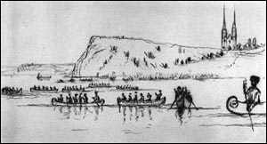 he met Algonquin bands and recorded their names: Quenongebin, Oüescariny,